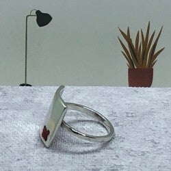 Maat 16,9 zilveren ring gebogen vierkant met rood kruisje van garen