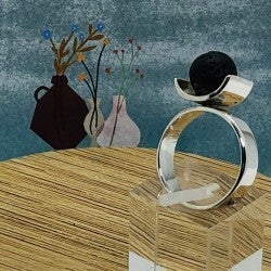 Maat 17 zilveren ring met Zwarte Lavasteen